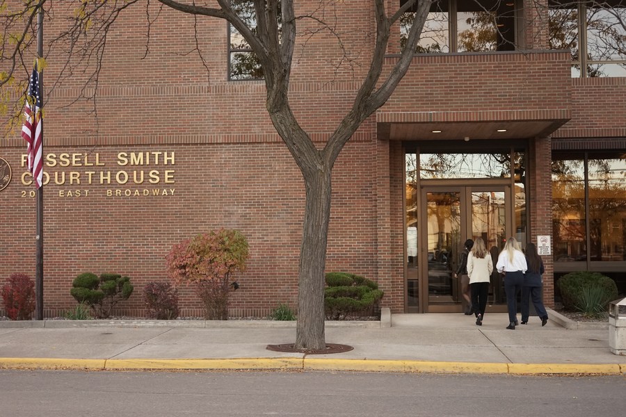 People enter the U.S. District Court for the District of Montana in Missoula, Montana, the United States, on Oct. 12, 2023. (Photo by Zeng Hui/Xinhua)