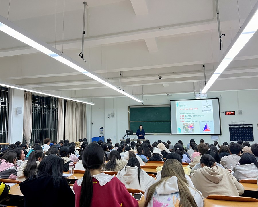Ouyang Huirong gives a sex education lesson to students at Yunnan Normal University in Kunming, southwest China's Yunnan Province, Nov. 28, 2023. (Xinhua/Zhao Cailin)