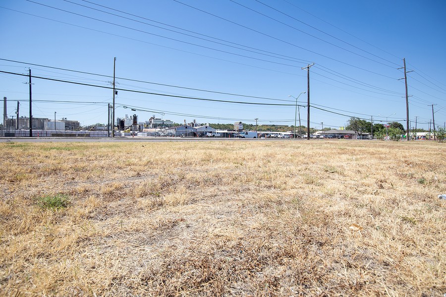 Photo taken on Aug. 17, 2023 shows a dried-up green space next to a major street in Dallas, Texas, the United States. The highest temperature in Dallas area reached 43 degrees Celsius on Thursday. (Photo by Xin Jin/Xinhua)