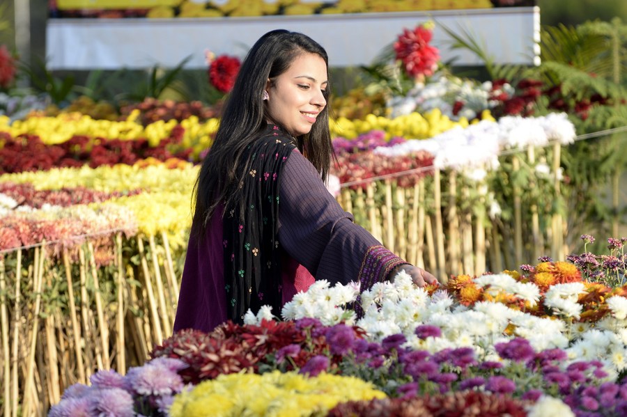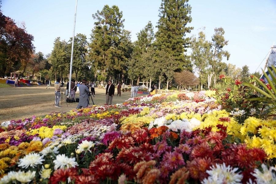 ISLAMABAD, Dec. 3 (Xinhua) -- The Pakistani capital of Islamabad has grabbed the attention of a multitude of visitors as the three-day autumn flower show kicked off in the city on Friday. Several types of seasonal chrysanthemums were on display, and people of all age groups immersed themselves in an undulating sea of colors.