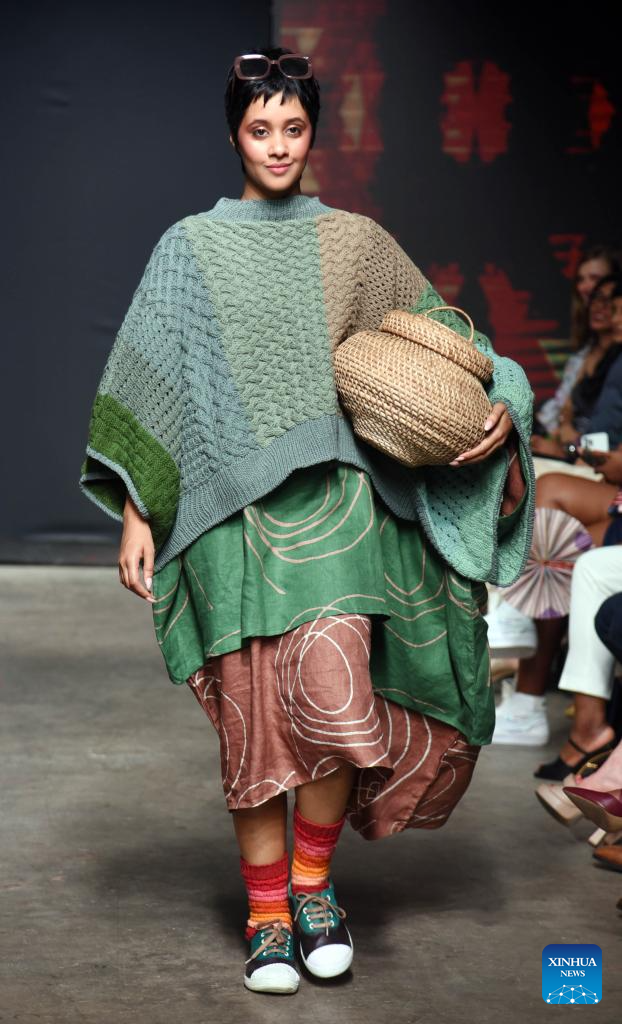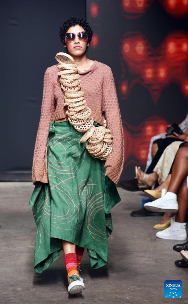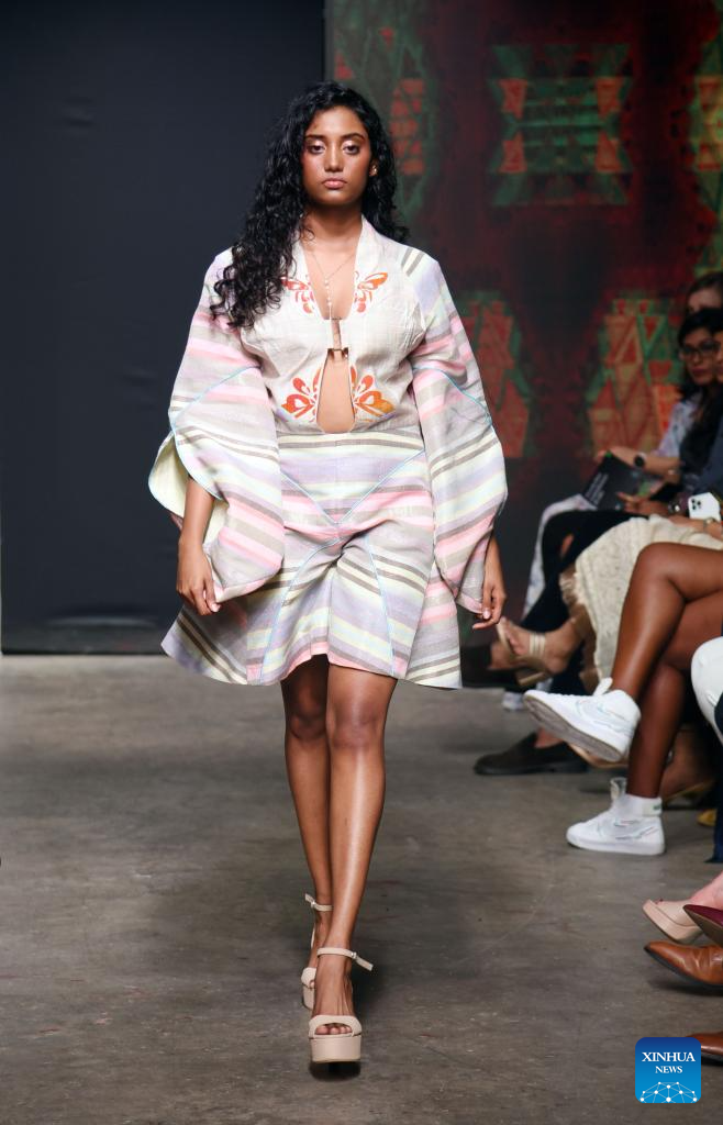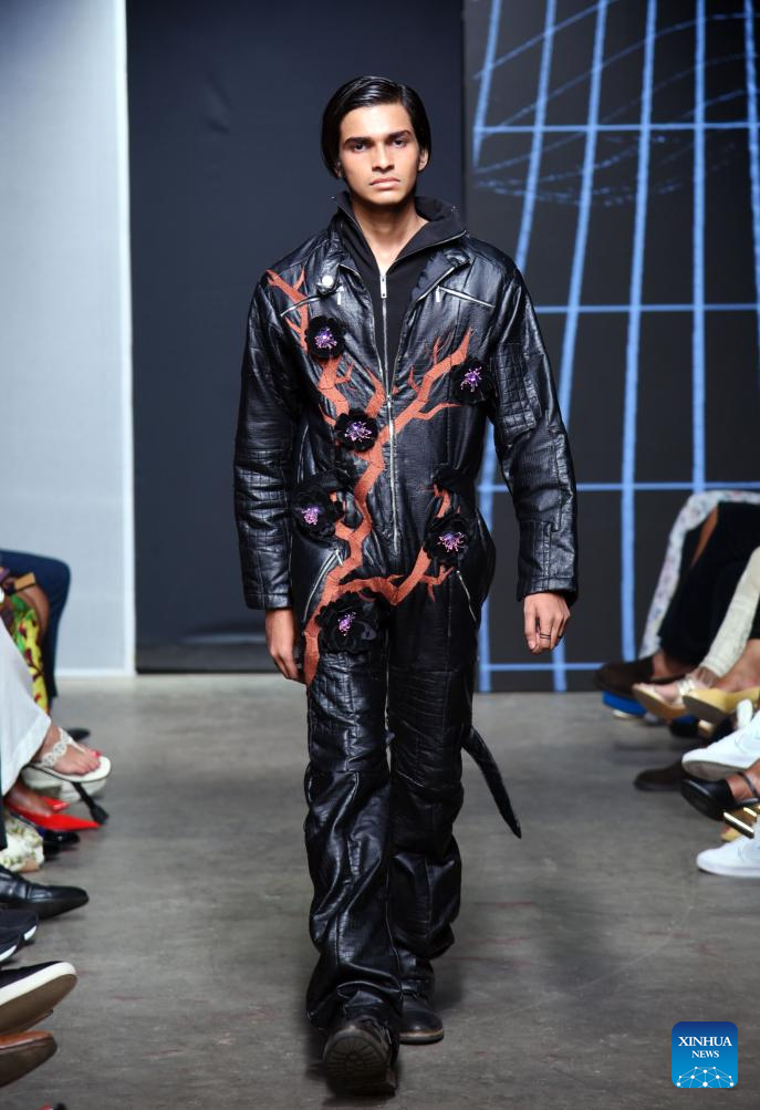 A model presents a creation during the Mercedes Benz Fashion Week in Colombo, Sri Lanka, on Dec. 2, 2023. (Photo by Gayan Sameera/Xinhua)