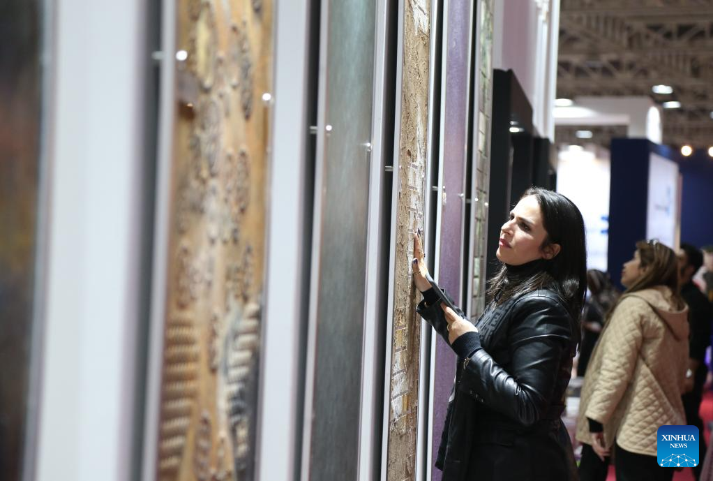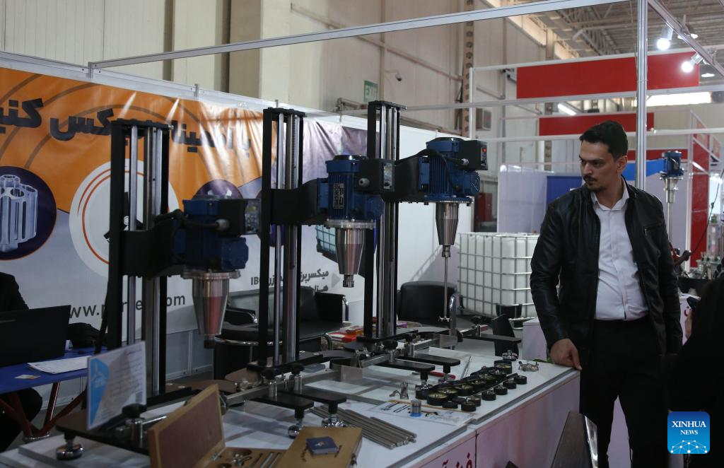 A visitor looks at products at the 23rd International Paint, Resin, Coatings, Composites and Plating Industries Fair in Tehran, Iran, on Dec. 4, 2023. The 23rd International Paint, Resin, Coatings, Composites and Plating Industries Fair opened here on Monday and will continue until Thursday. (Xinhua/Shadati)