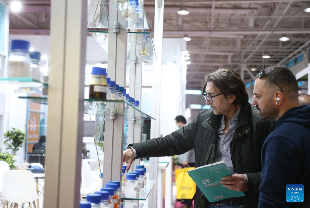 People visit the 23rd International Paint, Resin, Coatings, Composites and Plating Industries Fair in Tehran, Iran, on Dec. 4, 2023. The 23rd International Paint, Resin, Coatings, Composites and Plating Industries Fair opened here on Monday and will continue until Thursday. (Xinhua/Shadati)