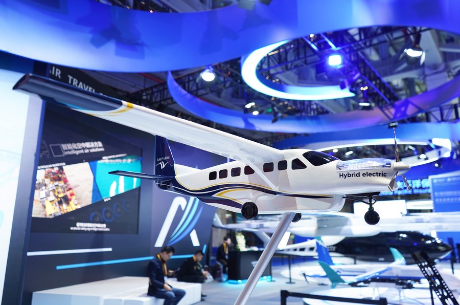 An eco caravan model of Ampaire is exhibited at the 6th China International Import Expo (CIIE) in east China's Shanghai, Nov. 10, 2023. (Xinhua/Jin Haoyuan)