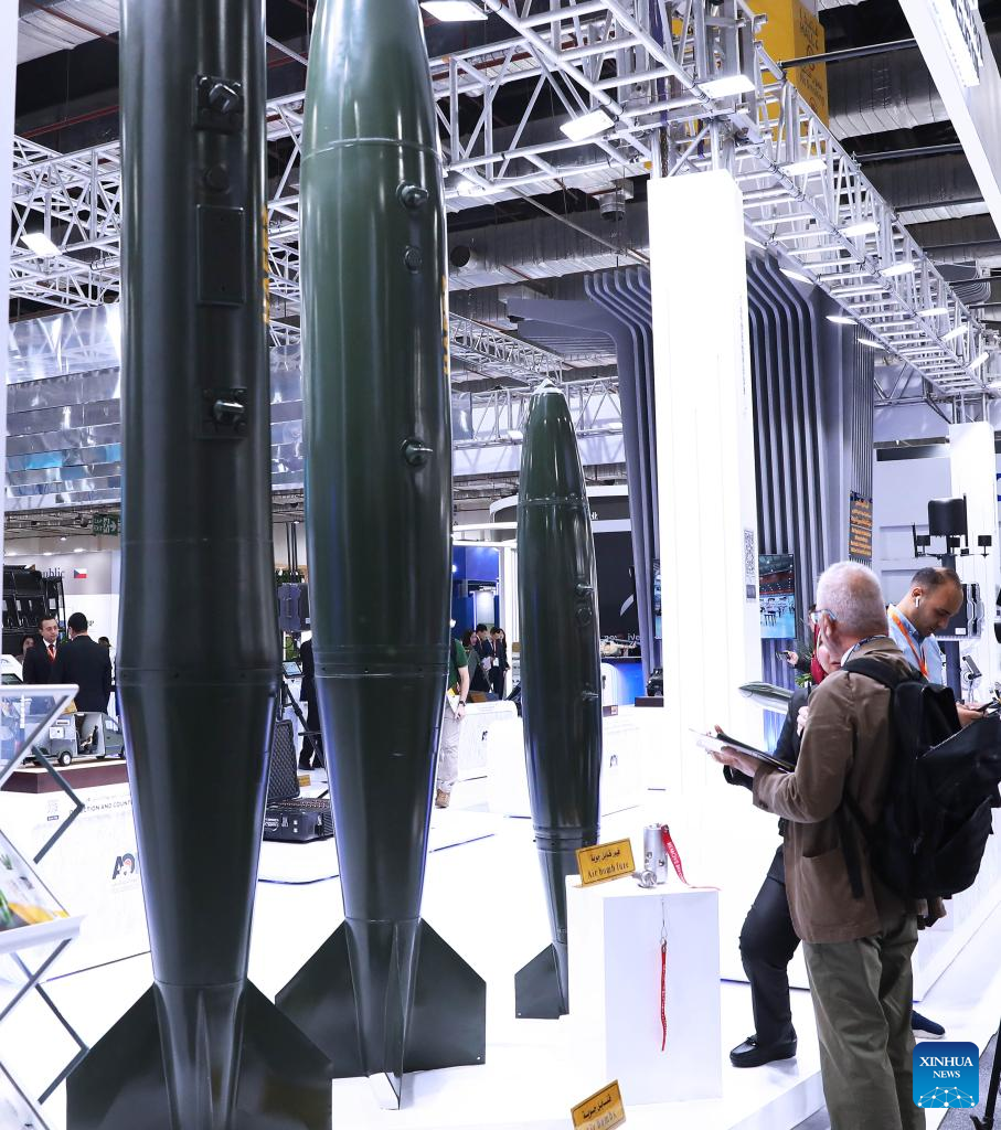 People visit EDEX 2023 in Cairo, Egypt, on Dec. 4, 2023. Egypt held on Monday the third session of its international defense expo, EDEX 2023, in Cairo. The four-day biennial event features around 400 defense and security companies from several countries displaying their up-to-date military technology, equipment and systems across land, sea and air. (Xinhua/Ahmed Gomaa)