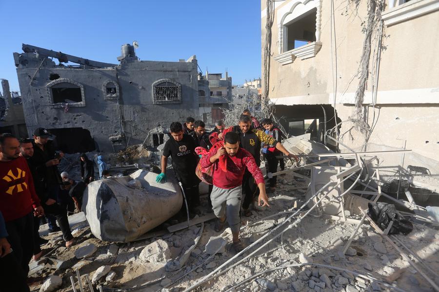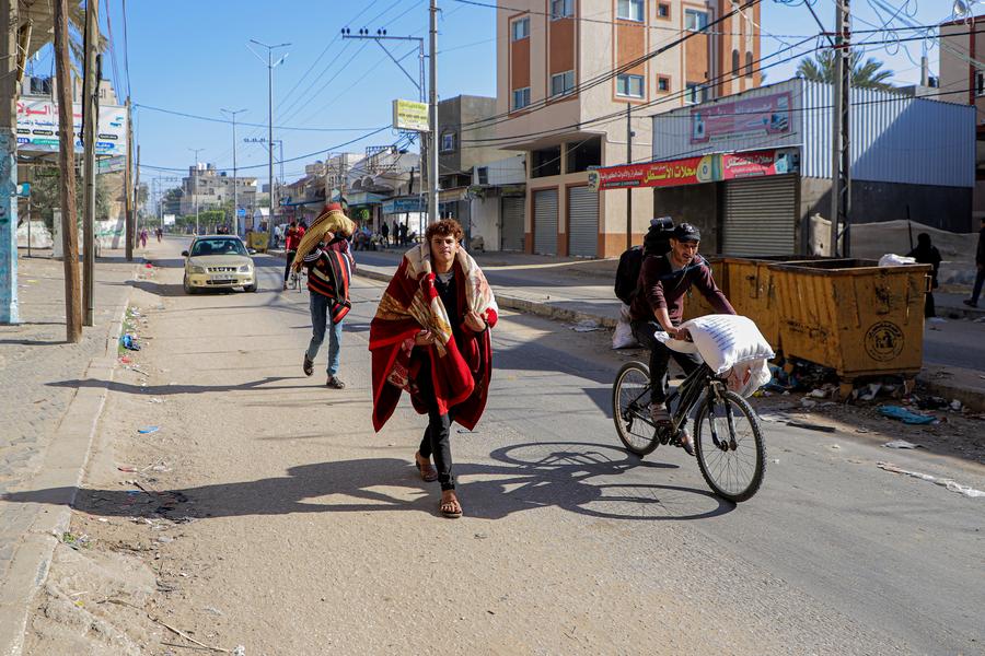 GAZA, Dec. 5 (Xinhua) -- The United Nations said on Tuesday that it has monitored a record number of Palestinians who have been displaced to the city of Rafah, in the far south of the Gaza Strip, to escape Israeli attacks.