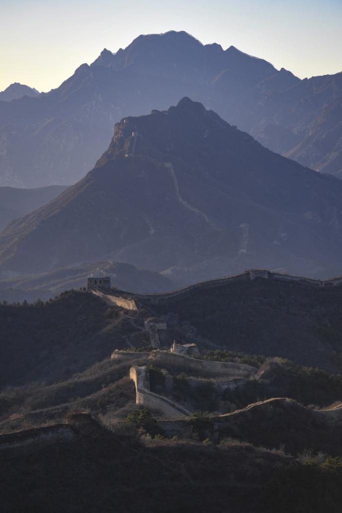 This photo taken on Nov. 14, 2023 shows the Panlongshan section (front) and the Wohushan section (rear) of Gubeikou section of the Great Wall in Beijing, capital of China. Gubeikou section of the Great Wall is located in Gubeikou Town, Miyun District of Beijing. The defense of the Great Wall is an important part of the early Chinese People's War of Resistance Against Japanese Aggression. In 1933, the Chinese troops fought against Japanese invaders at places including Lengkou, Xifengkou and Gubeikou sections of the Great Wall. As a part of the national anthem lyrics, the Great Wall is the spiritual symbol of the Chinese nation. The ancient Great Wall has witnessed Chinese people's patriotism, solidarity and strength. (Xinhua/Chen Zhonghao)