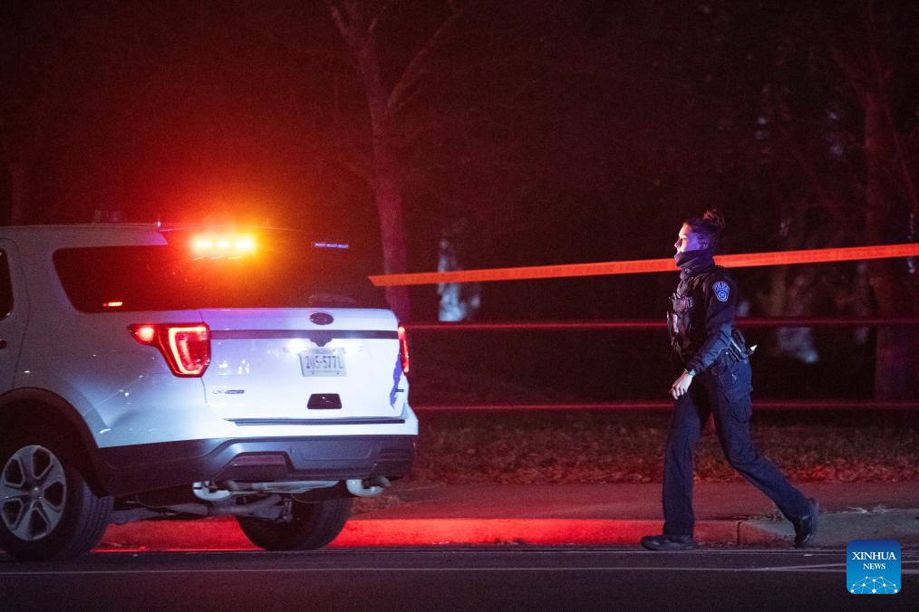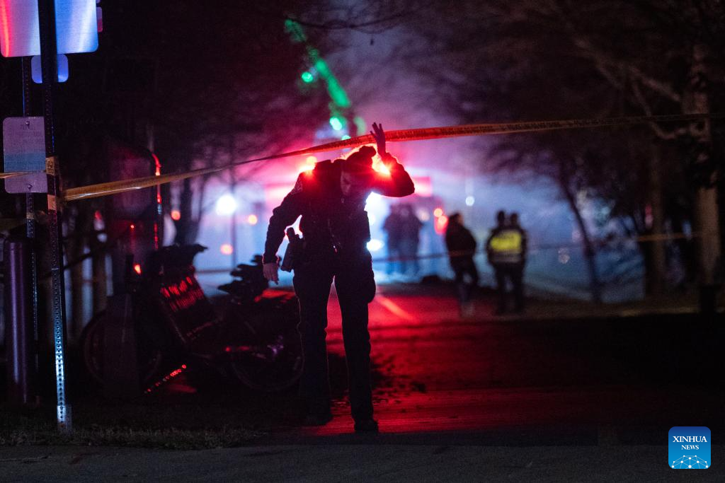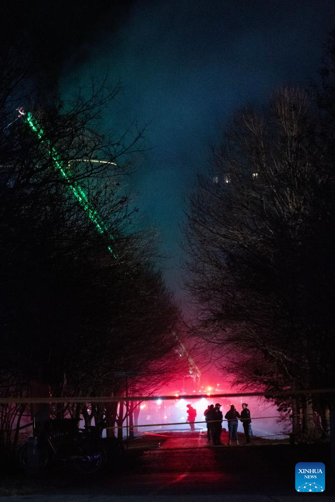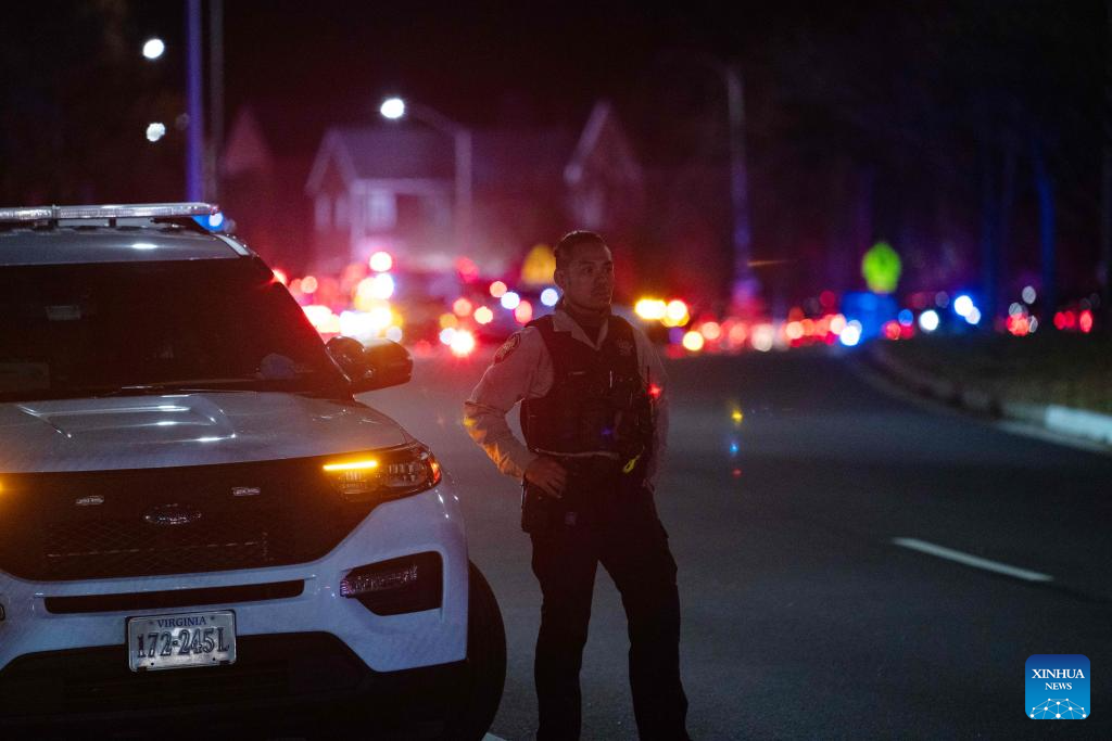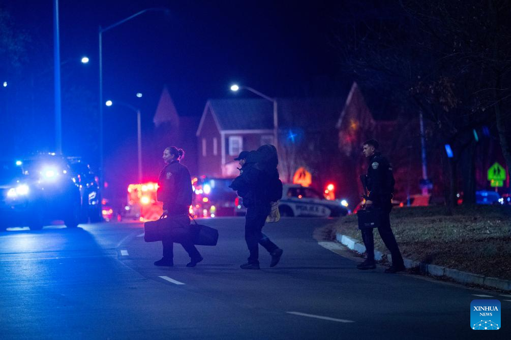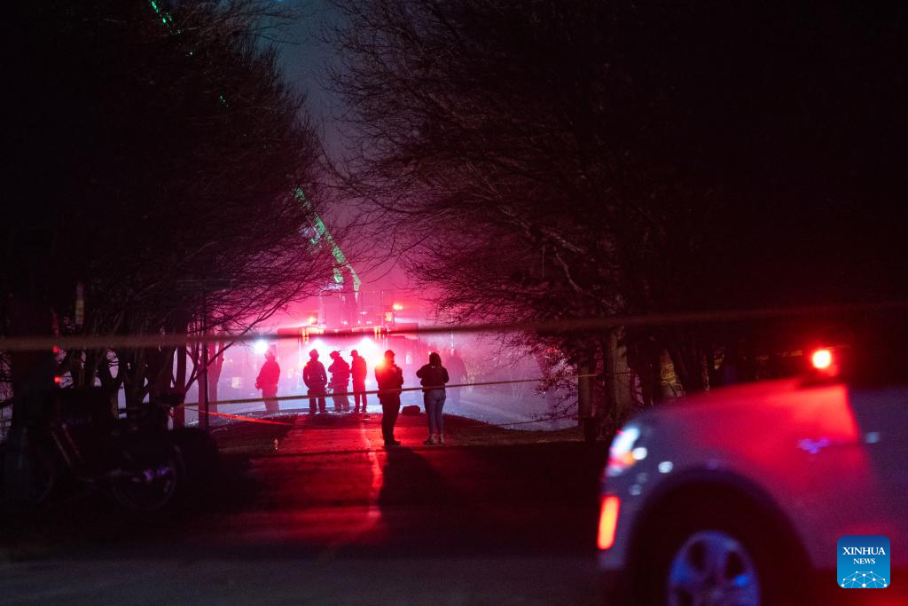 Police officers work at the scene of a massive explosion in Arlington, Virginia, the United States, Dec. 4, 2023. Resident James Yoo, 56, the suspect inside an Arlington, Virginia, home that went up in flames Monday night while police were executing a search warrant is presumed to be dead, authorities said Tuesday.