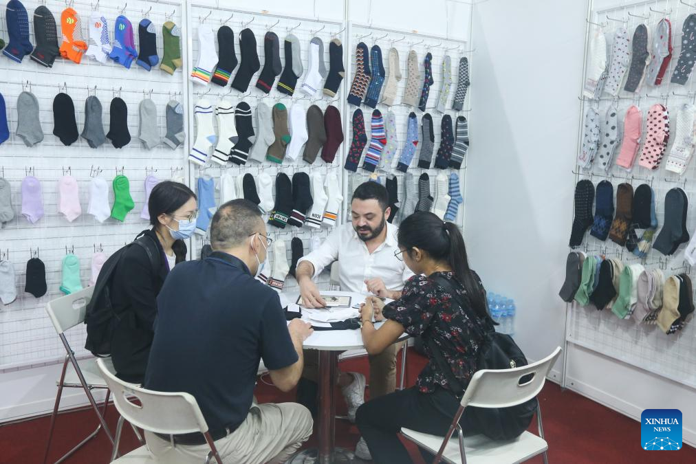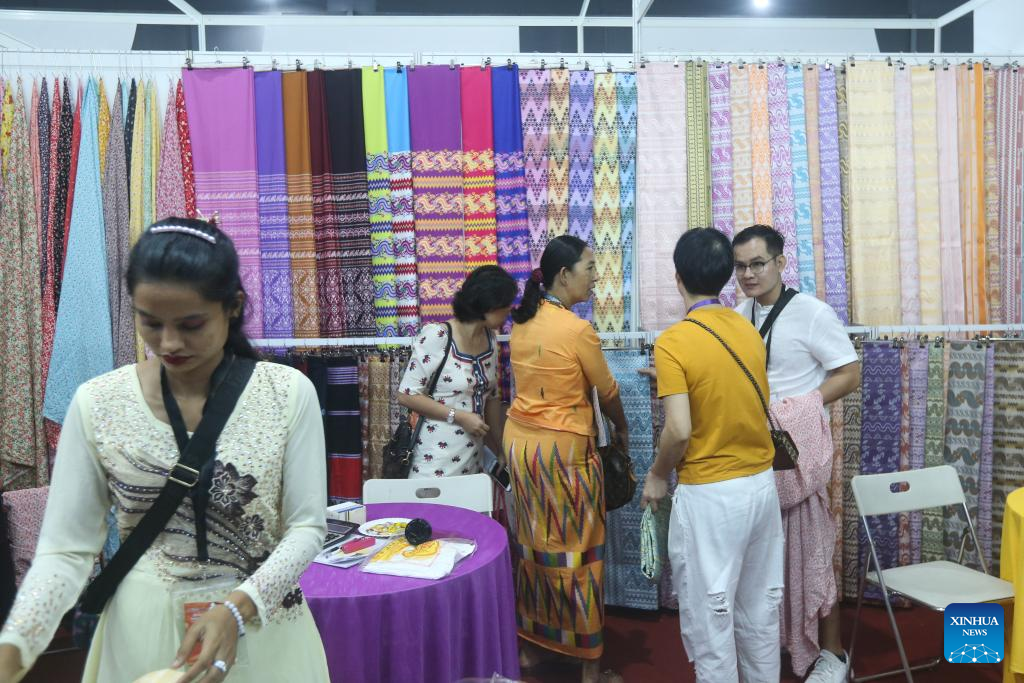 People visit the 2023 Myanmar International Textile and Machinery Fair in Yangon, Myanmar, Dec. 8, 2023. (Photo by Myo Kyaw Soe/Xinhua)