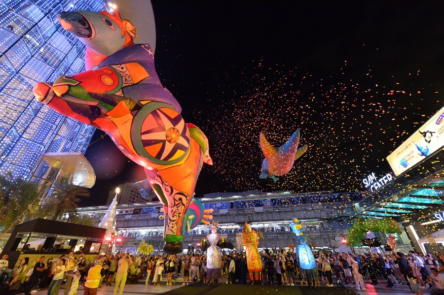 A balloon is seen in front of a shopping mall in Bangkok, Thailand, Dec. 8, 2023. (Xinhua/Rachen Sageamsak)