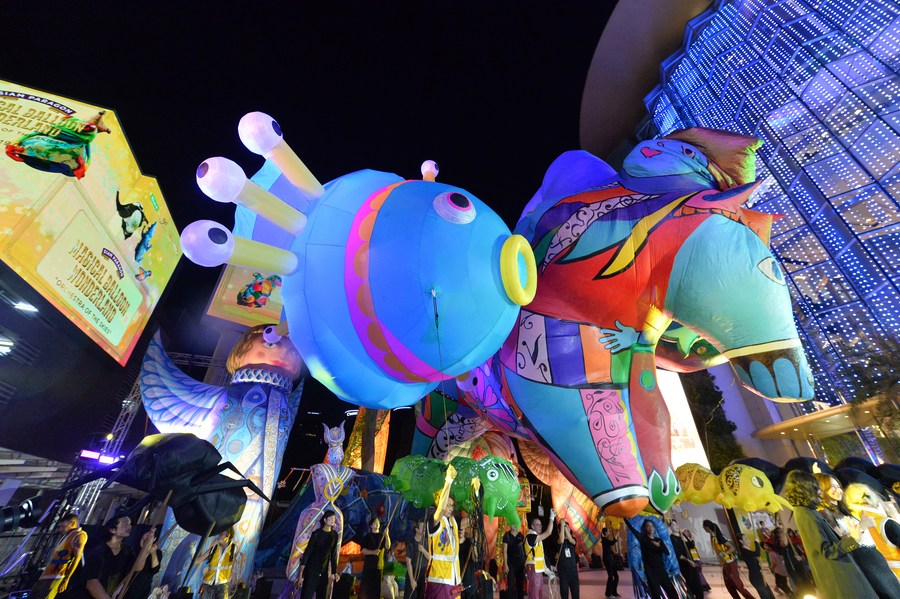 BANGKOK, Dec. 10 (Xinhua) -- Beautifully crafted balloons in various shapes come to life under the brilliant lighting at a magical balloon show in the Thai capital, bringing a visual feast to visitors.