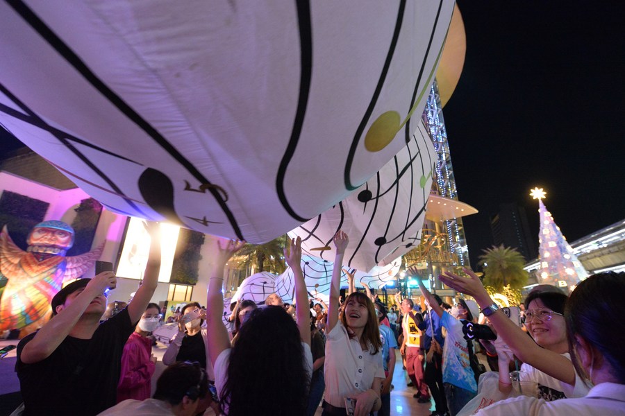 Balloons are seen in front of a shopping mall in Bangkok, Thailand, Dec. 8, 2023. (Xinhua/Rachen Sageamsak)