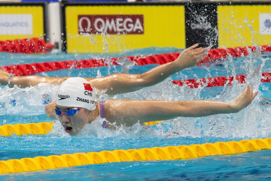 Olympic champion Zhang Yufei clocked 24.58 seconds to win the women's 50m freestyle, followed by national teammate Yang Junxuan in 24.85.