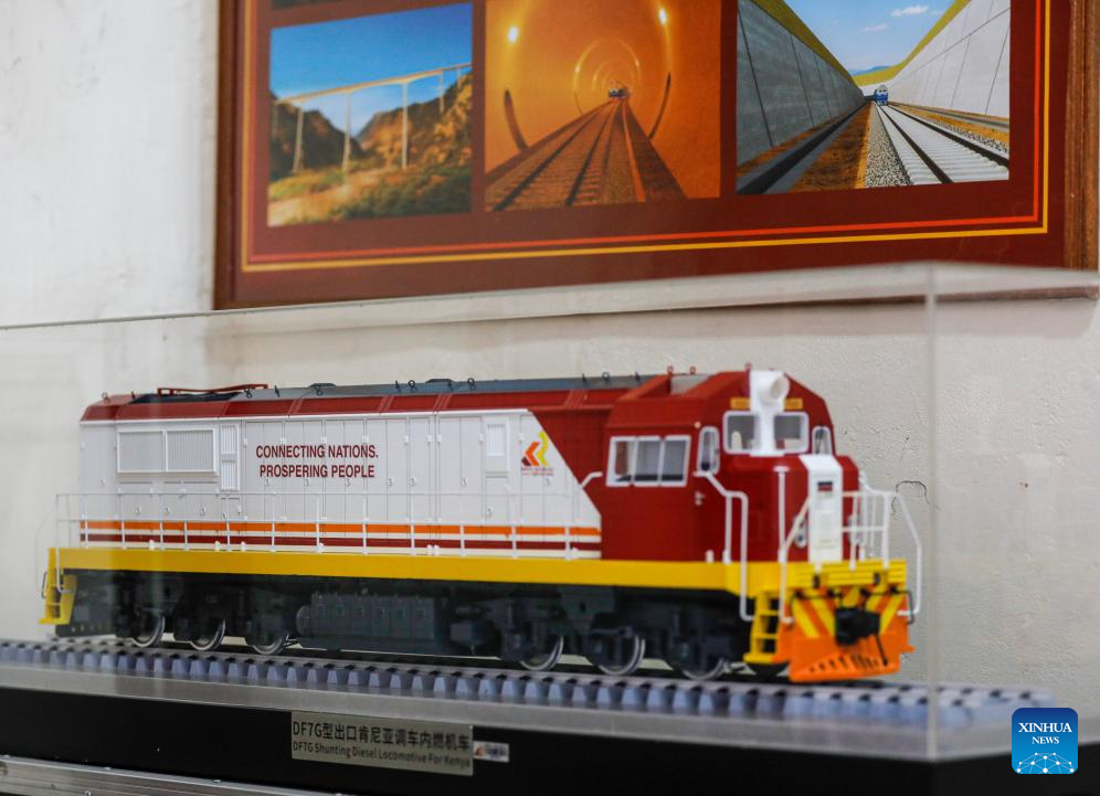 Photo taken on Nov. 27, 2023 shows a Mombasa-Nairobi Standard Gauge Railway locomotive miniature at the Nairobi Railway Museum in Nairobi, Kenya. The Nairobi Railway Museum, nestled in Nairobi's bustling downtown, remains a popular destination for both locals and tourists eager to delve into Kenya's rich history. (Xinhua/Li Yahui)