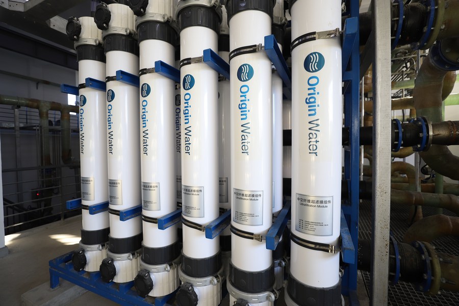 Photo taken on Dec. 4, 2023 shows equipment at the China-donated seawater desalination plant in Gwadar, Pakistan. (Xinhua/Tang Binhui)