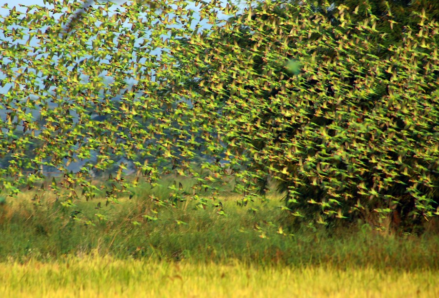 Local paddy farmers fear a huge loss this season due to the parakeet invasion.