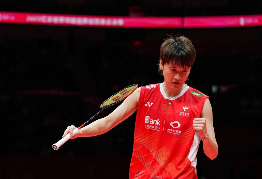 HANGZHOU, Dec. 14 (Xinhua) -- Olympic champions Chen Yufei of China and Carolina Marin of Spain booked their spots in the women's singles last four in advance after taking straight-set wins at the 2023 BWF World Tour Finals here on Thursday.