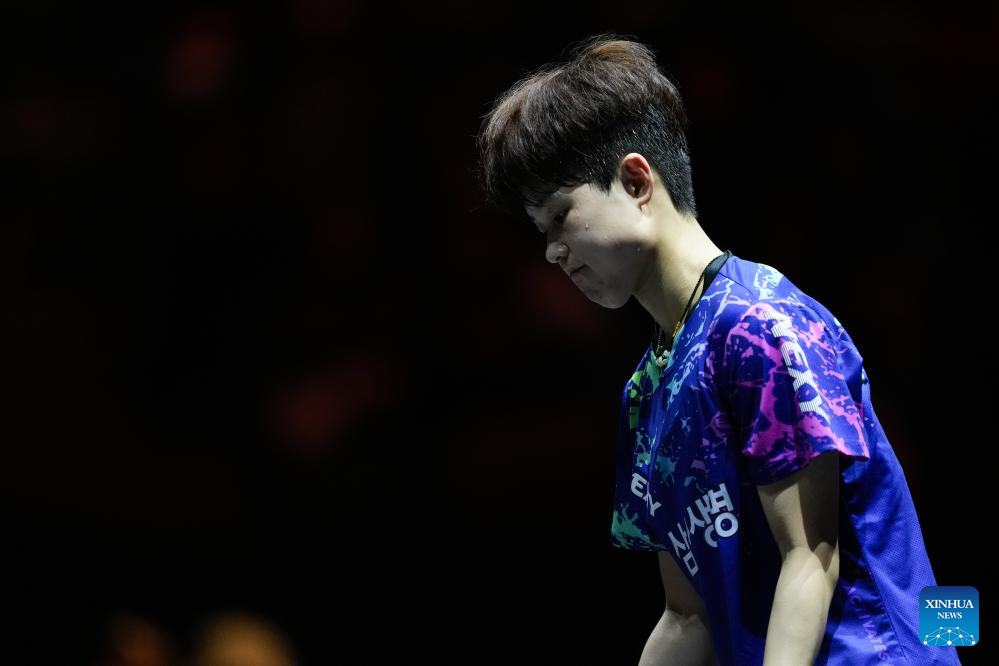 Joo Cheonhui of South Korea reacts during the women's singles round of 16 match against Han Ying of Germany at the WTT Finals Women Nagoya 2023, in Nagoya, Japan on Dec. 15, 2023. (Xinhua/Zhang Xiaoyu)