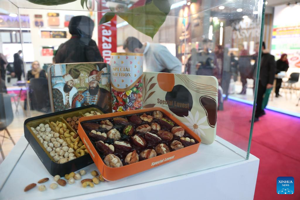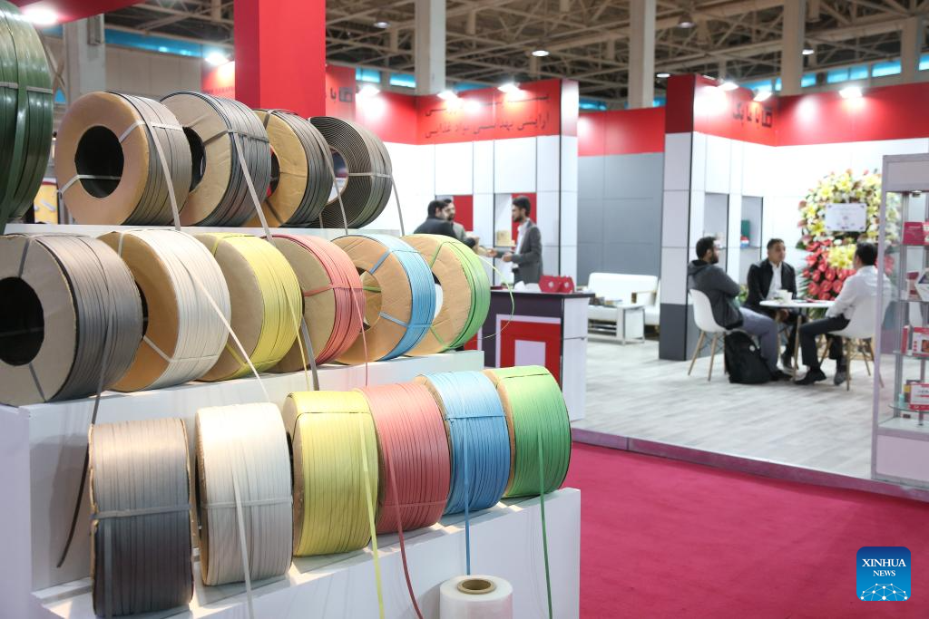 Products are displayed at the 30th printing, packing and related machinery exhibition in Tehran, Iran, Dec. 13, 2023. The four-day event kicked off on Wednesday, with the participation of more than 500 enterprises. (Xinhua/Shadati)