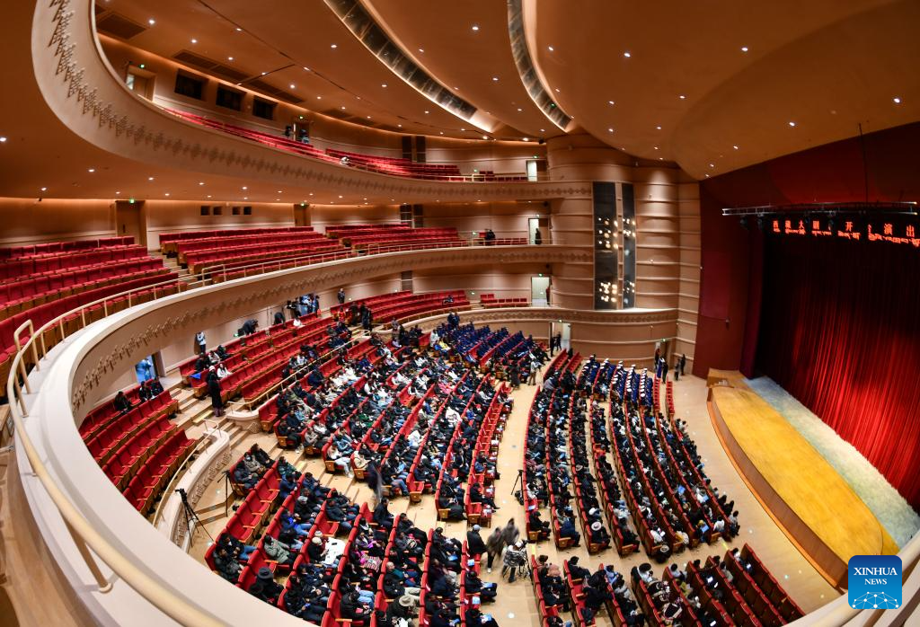 This photo taken on Dec. 15, 2023 shows an interior view of Xizang grand theatre in Lhasa, southwest China's Xizang Autonomous Region. Xizang grand theatre became operational on Friday. (Xinhua/Kelsang Namgyai)