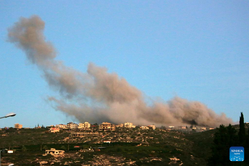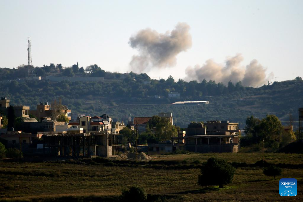 Smoke rises following an Israeli airstrike in Majdal Zoun, Lebanon, Dec. 15, 2023. (Photo by Ali Hashisho/Xinhua)
