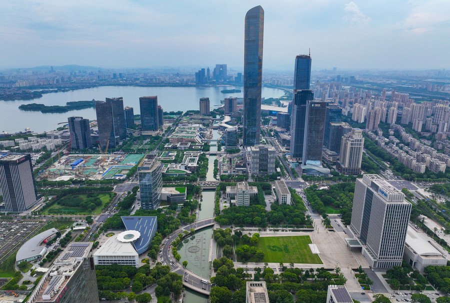 This aerial photo taken on July 3, 2023 shows a view of an industrial park in Suzhou, east China's Jiangsu Province. (Xinhua/Li Bo)