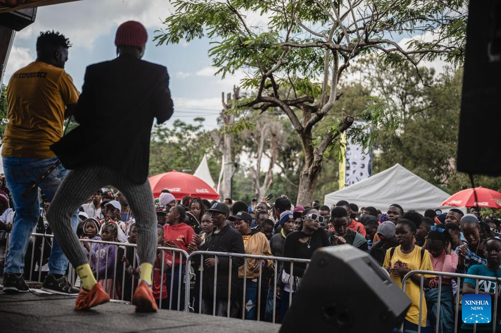 People enjoy a live music show at Uhuru Park in Nairobi, capital of Kenya, on Dec. 16, 2023. (Xinhua/Li Yahui)