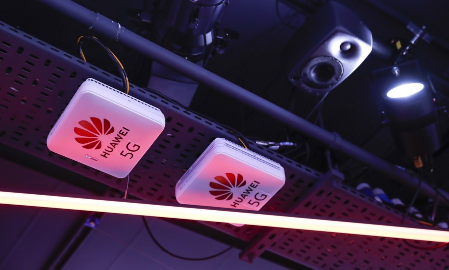 Photo taken on Jan. 28, 2020 shows Huawei 5G equipment at Huawei 5G Innovation and Experience Center in London, Britain. (Xinhua/Han Yan)