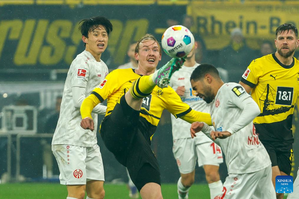 BERLIN, Dec. 19 (Xinhua) -- Julian Brandt's free-kick goal wasn't enough to end Borussia Dortmund's winless run, as Sepp van den Berg's equalizer gifted Mainz a 1-1 draw in Bundesliga on Tuesday.