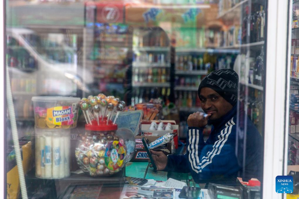 A migrant poses in his shop in Athens, Greece, on Dec. 21, 2023. Greece welcomed the European Union's (EU) New Pact on Migration and Asylum, feeling "vindicated" after many years of persistent calls for stronger solidarity within the EU, Greek national news agency AMNA reported on Thursday. (Xinhua/Marios Lolos)