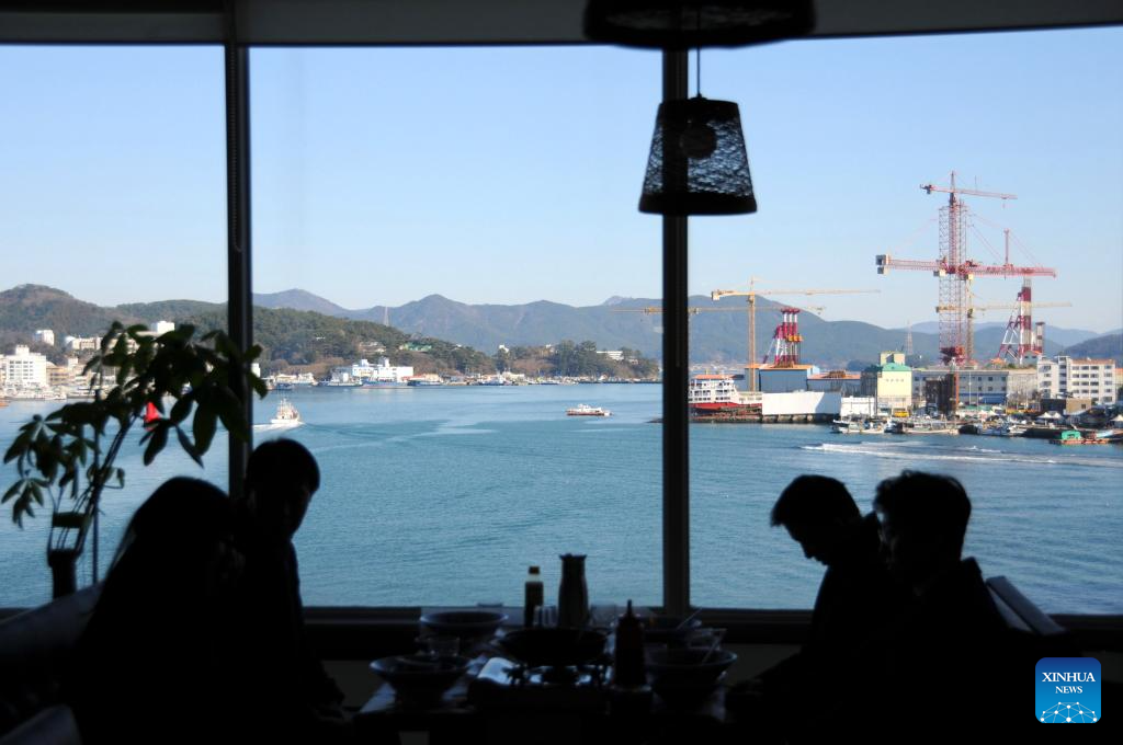 Tourists eat at a restaurant in Tongyeong, South Korea, Dec. 22, 2023. (Photo by Yang Chang/Xinhua)