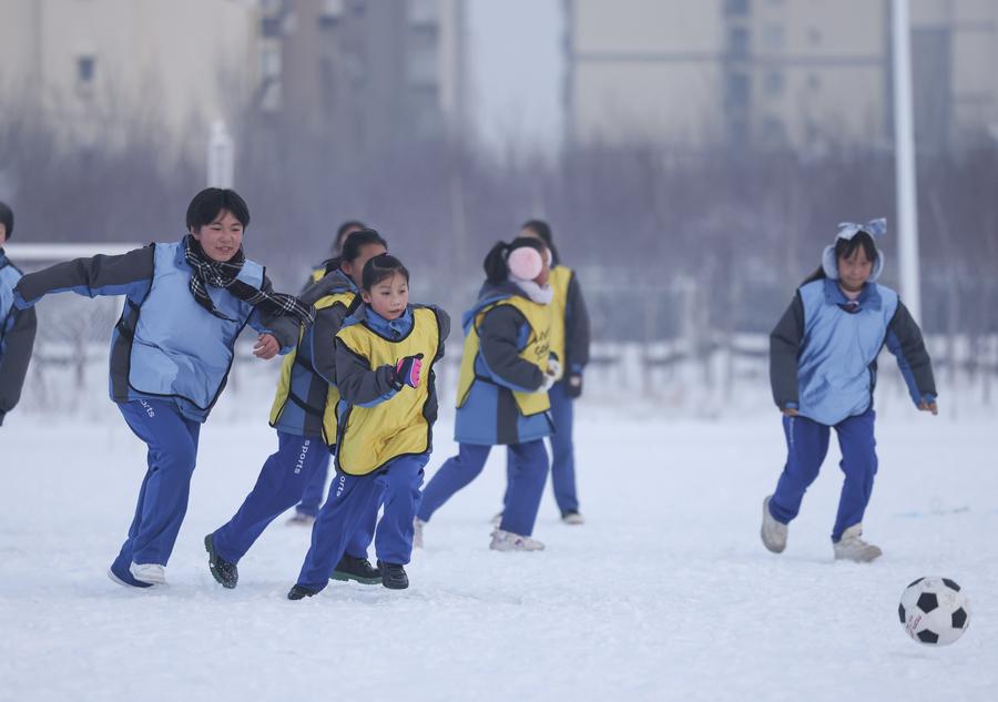 "Sometimes, we take off our coats while playing snow football. The game can strengthen our physical fitness and improve our body coordination in winter," he said.