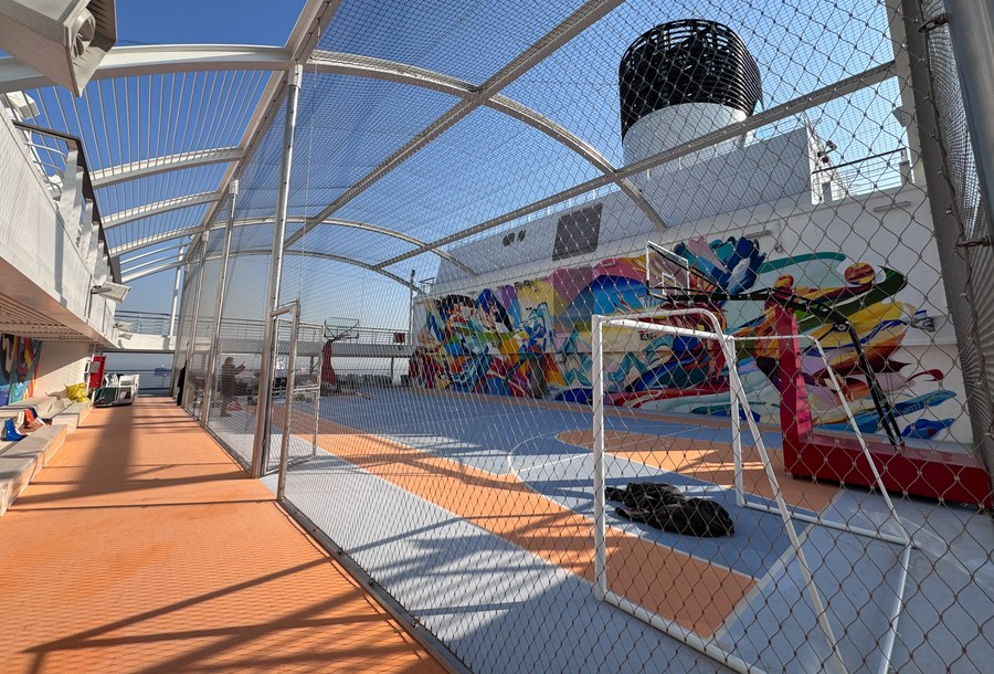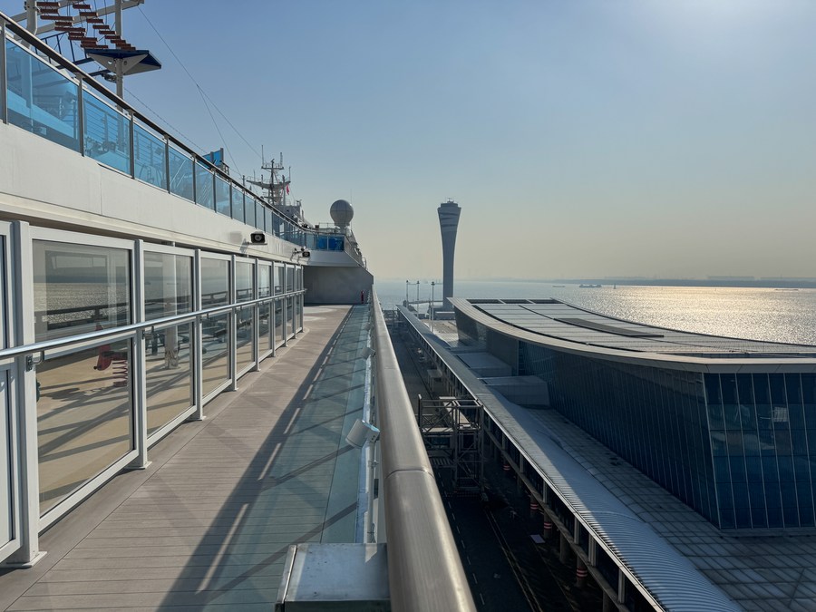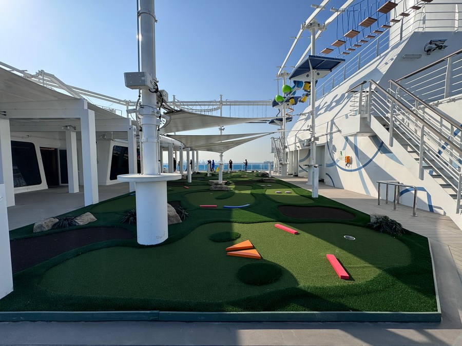This photo taken on Dec. 24, 2023 shows a sports facility aboard the cruise ship "Adora Magic City" docked at the Shanghai Wusongkou International Cruise Terminal in east China's Shanghai. (Xinhua/Ding Ting)