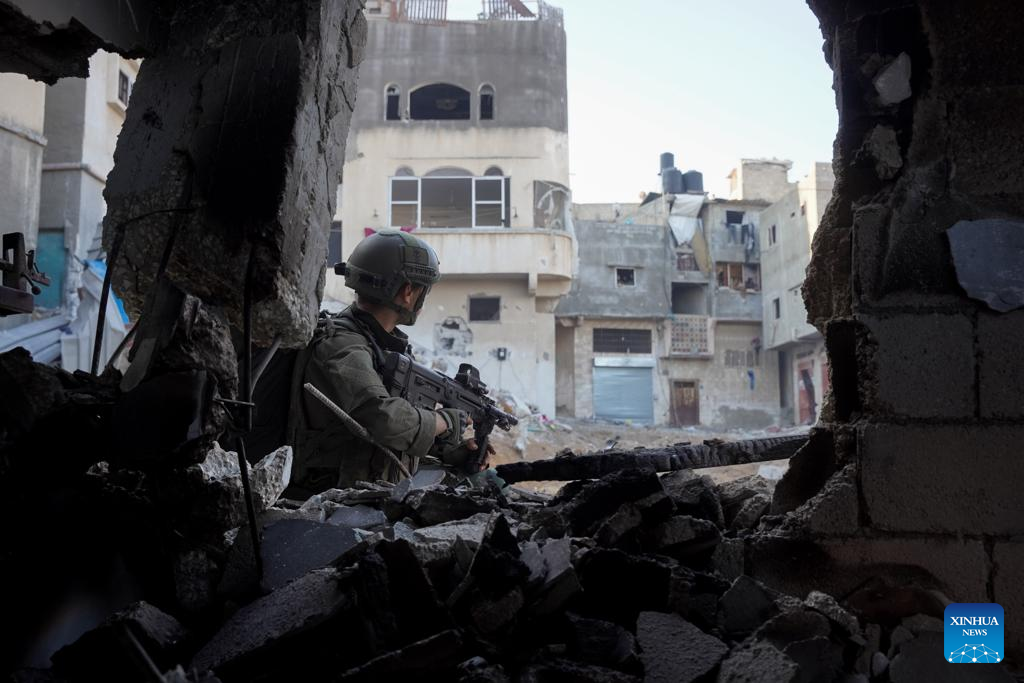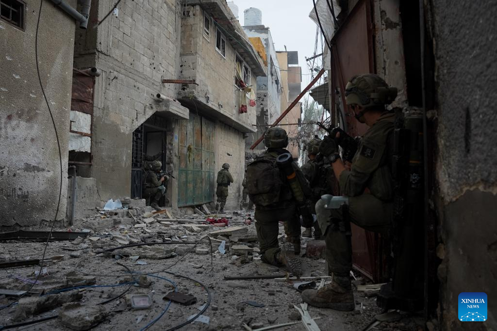 This photo released by the Israel Defense Forces (IDF) on Dec. 25, 2023 shows Israeli troops conducting military operations in the southern Gaza Strip city of Khan Younis.(Xinhua)