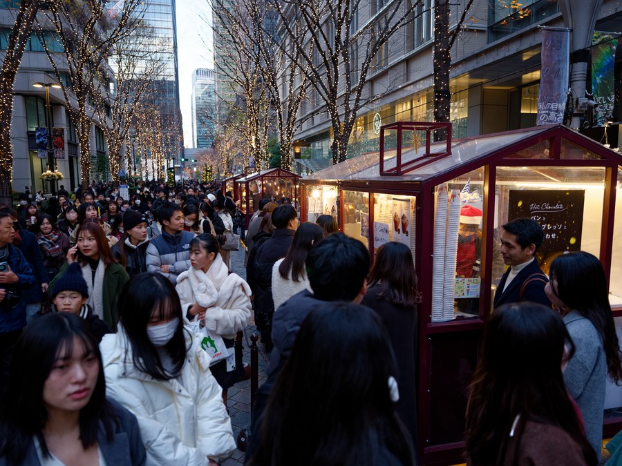 People visit a Christmas market near the Tokyo Station in Tokyo, Japan, Dec. 24, 2023. (Xinhua/Zhang Xiaoyu)