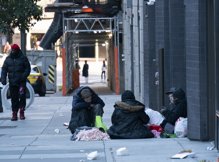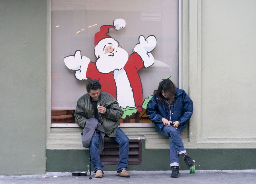 Homeless people are pictured in San Francisco, California, the United States, Dec. 23, 2023. (Photo by Li Jianguo/Xinhua)