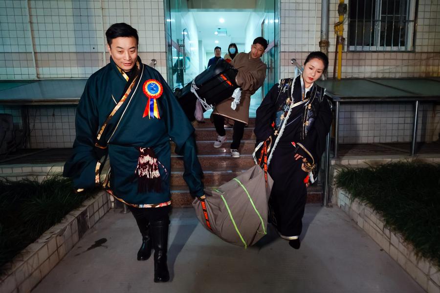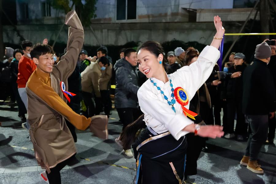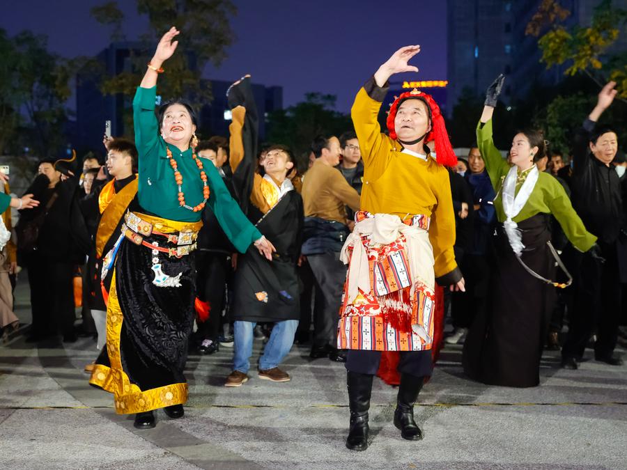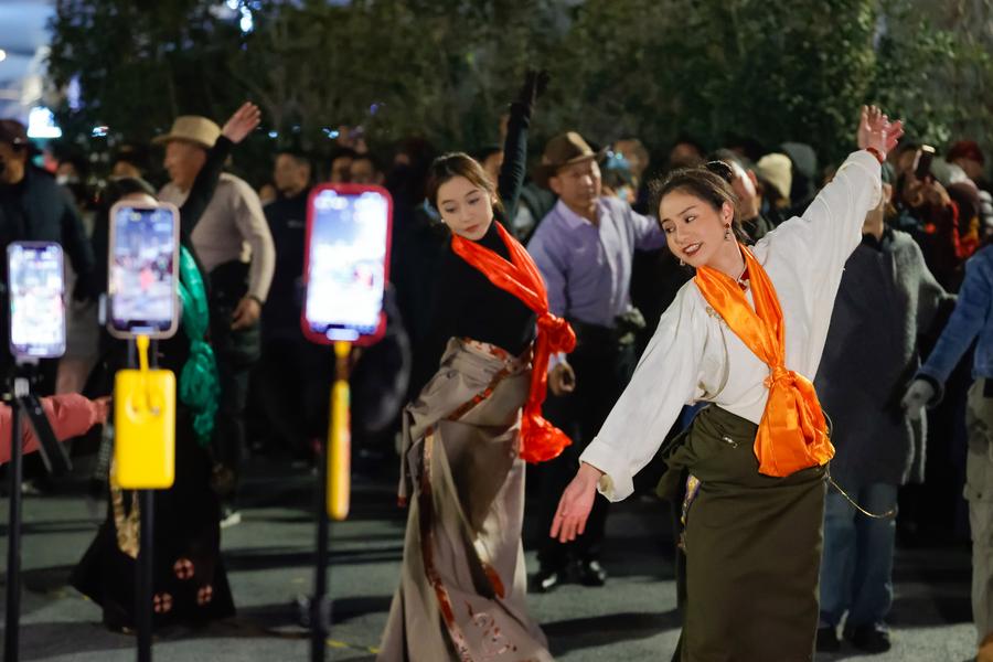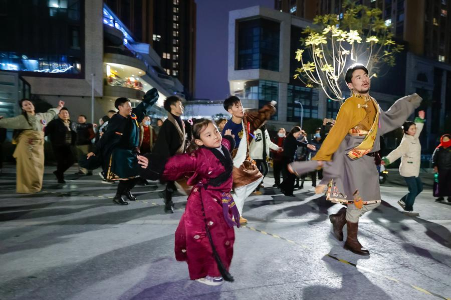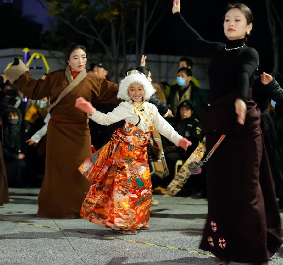 CHENGDU, Dec. 26 (Xinhua) -- At a public square in Chengdu, a bustling city of over 20 million people in southwestern China, 24-year-old Tibetan dancer Yanggyi, prepared for her performance, adjusting her traditional attire and the bun at the back of her head.