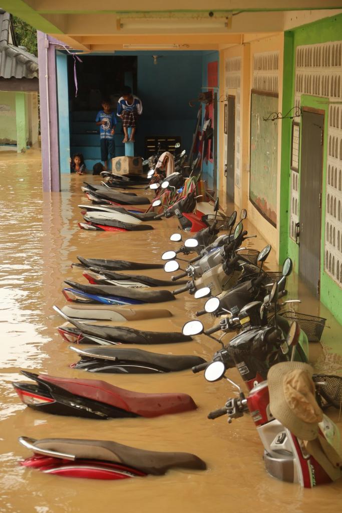 Photo taken on Dec. 25, 2023 shows e-bikes submerged in flood water in Narathiwat, Thailand. (Xinhua)■