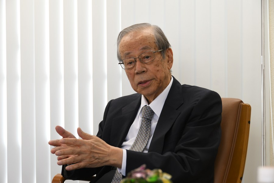 Former Japanese Prime Minister Yasuo Fukuda takes an interview with Xinhua in Tokyo, Japan, on Dec. 29, 2023. (Xinhua/Yue Chenxing)