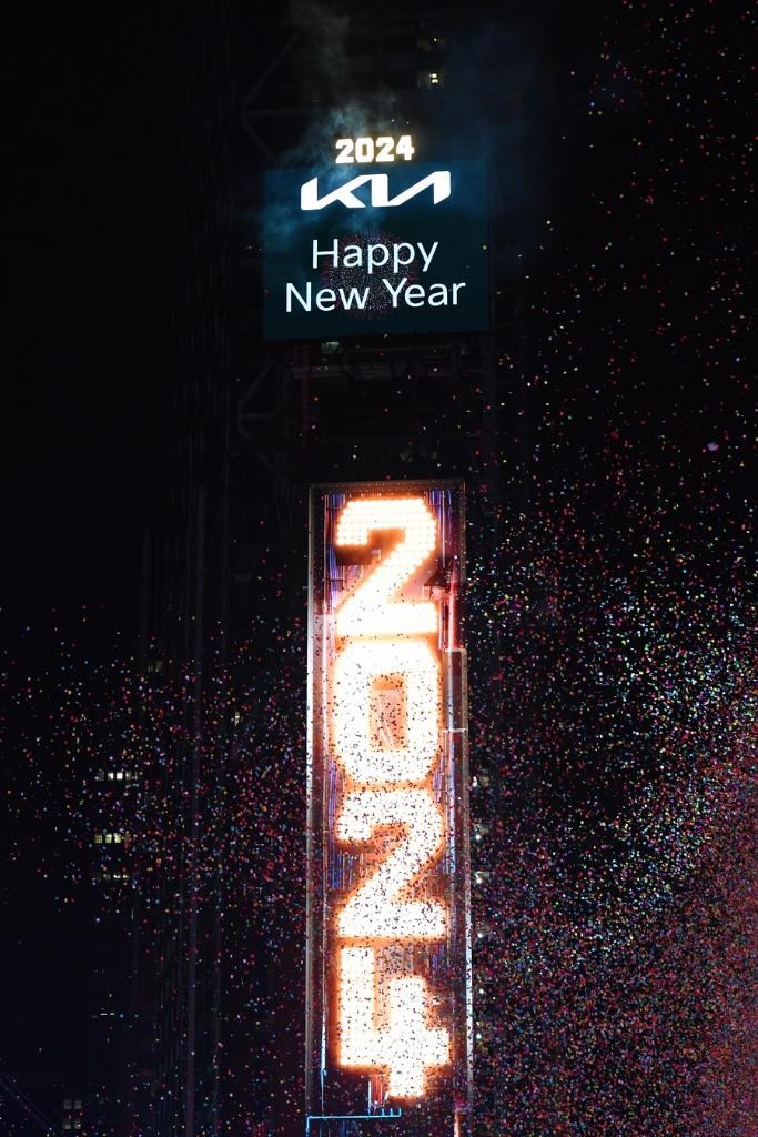 Greg Packer, a New Yorker inside the crush of visitors to Times Square, said, "2023 was crazy with protests and mass shootings and just chaos. Hopefully, 2024 can be a better year."