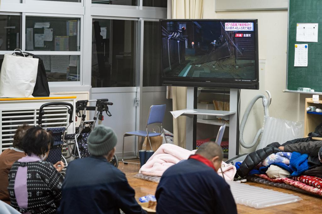 This photo taken on Jan. 2, 2024 shows a road damaged by earthquakes in Hakui, Ishikawa prefecture, Japan. (Xinhua/Zhang Xiaoyu)This photo taken on Jan. 2, 2024 shows a road damaged by earthquakes in Hakui, Ishikawa prefecture, Japan. (Xinhua/Zhang Xiaoyu)Residents transfer daily supplies from an earthquake-affected house to a tent in Hakui, Ishikawa prefecture, Japan, Jan. 2, 2024. (Xinhua/Zhang Xiaoyu)This photo taken on Jan. 2, 2024 shows a road damaged by earthquakes in Hakui, Ishikawa prefecture, Japan. (Xinhua/Zhang Xiaoyu)This photo taken on Jan. 2, 2024 shows a landslide caused by earthquakes in Hakui, Ishikawa prefecture, Japan. (Xinhua/Zhang Xiaoyu)This photo taken on Jan. 2, 2024 shows a road damaged by earthquakes in Hakui, Ishikawa prefecture, Japan. (Xinhua/Zhang Xiaoyu)This photo taken on Jan. 2, 2024 shows an almost vacant food shelf at a supermarket in Hakui, Ishikawa, Japan. (Xinhua/Zhang Xiaoyu)This photo taken on Jan. 2, 2024 shows an almost vacant food shelf at a supermarket in Hakui, Ishikawa, Japan. (Xinhua/Zhang Xiaoyu)People take refuge at a primary school in Shika, Ishikawa prefecture, Japan, Jan. 2, 2024. (Xinhua/Zhang Xiaoyu)People take refuge at a primary school in Shika, Ishikawa prefecture, Japan, Jan. 2, 2024. (Xinhua/Zhang Xiaoyu)This photo taken on Jan. 2, 2024 shows a board registering the number of refugees at a primary school in Shika, Ishikawa prefecture, Japan. (Xinhua/Zhang Xiaoyu)