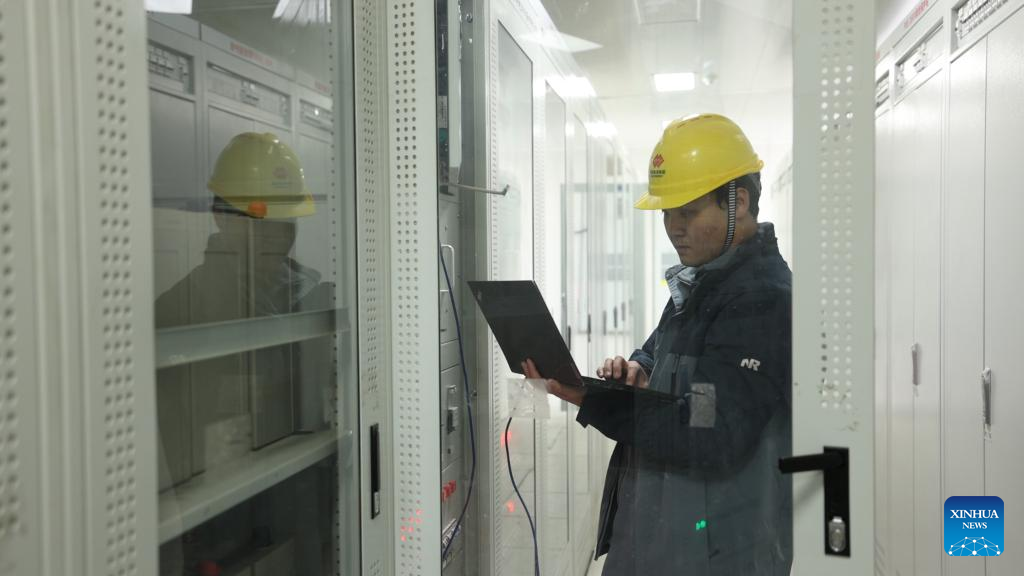A staff member tests equipment at a large-scale wind power project in Nagqu City, southwest China's Xizang Autonomous Region, Dec. 14, 2023. (Photo by Wang Yuhan/Xinhua)