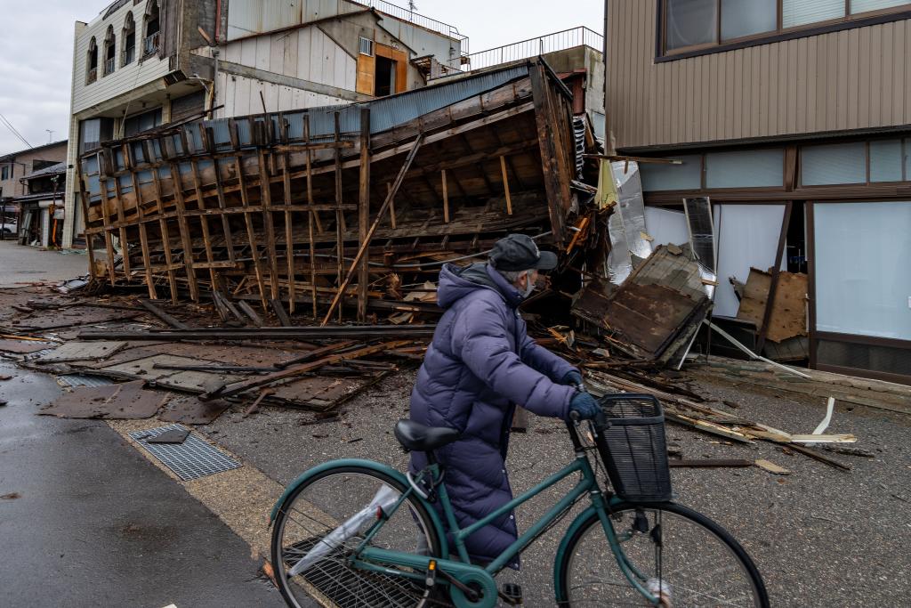 This photo taken on Jan. 3, 2024 shows an earthquake-damaged house in Nanao, Ishikawa prefecture, Japan. (Xinhua/Zhang Xiaoyu)Residents attempt to screen earthquake-damaged windows with fabric in Nanao, Ishikawa prefecture, Japan on Jan. 3, 2024. (Xinhua/Zhang Xiaoyu)This photo taken on Jan. 3, 2024 shows an earthquake-damaged wire pole in Nanao, Ishikawa prefecture, Japan. (Xinhua/Zhang Xiaoyu)This photo taken on Jan. 3, 2024 shows an earthquake-damaged house in Nanao, Ishikawa prefecture. (Xinhua/Zhang Xiaoyu)This photo taken on Jan. 3, 2024 shows an earthquake-damaged house in Nanao, Ishikawa prefecture, Japan. (Xinhua/Zhang Xiaoyu)Residents fetch fresh water at an aquatic products store in Nanao, Ishikawa prefecture, Japan, Jan. 3, 2024. Electric power and tap water supplies have been cut off here due to recent earthquakes. (Xinhua/Zhang Xiaoyu)A man passes by earthquake-damaged houses in Nanao, Ishikawa prefecture, Japan, Jan. 3, 2024. (Xinhua/Zhang Xiaoyu)This photo taken on Jan. 3, 2024 shows an earthquake-damaged house in Nanao, Ishikawa prefecture. (Xinhua/Zhang Xiaoyu)