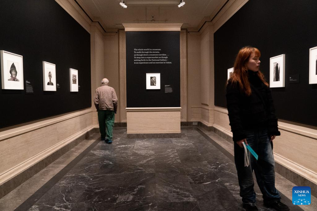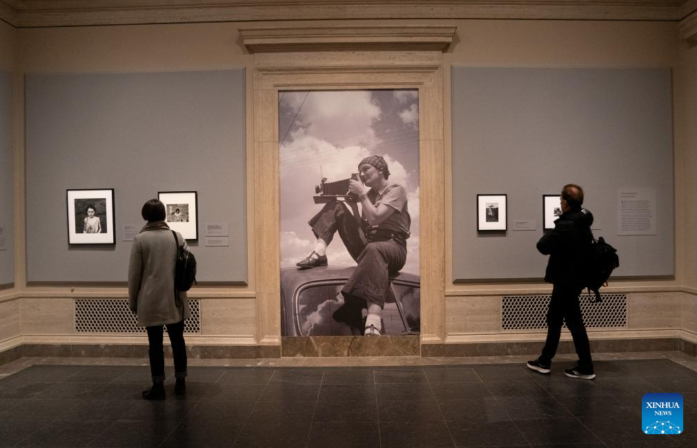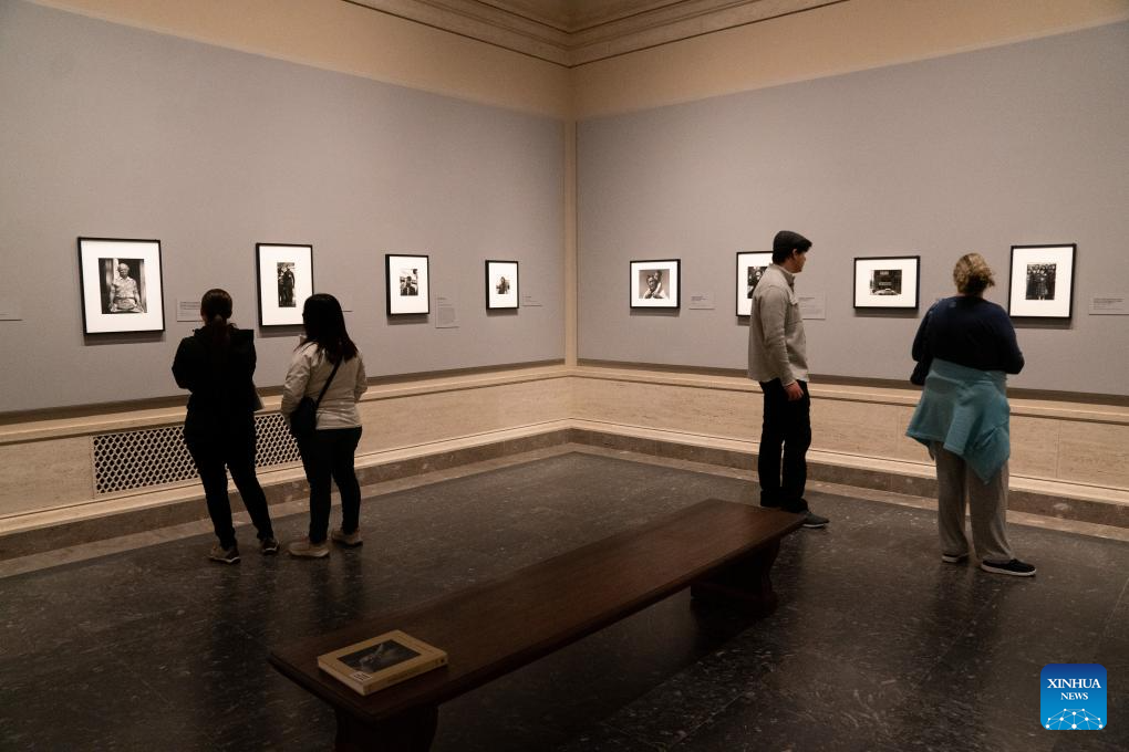 People attend the exhibition Dorothea Lange: Seeing People at the National Gallery of Art in Washington, D.C., the United States, on Jan. 3, 2024. Featuring some 100 photographs, the exhibition Dorothea Lange: Seeing People addresses Lange's innovative approaches to picturing people, emphasizing her work on social issues including economic disparity, migration, poverty, and racism. (Xinhua/Liu Jie)