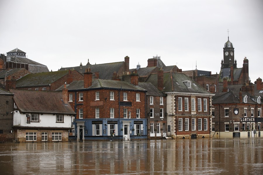 Photo taken on Jan. 5, 2024 shows a flooded area in York, Britain. (Photo by Craig Brough/Xinhua)