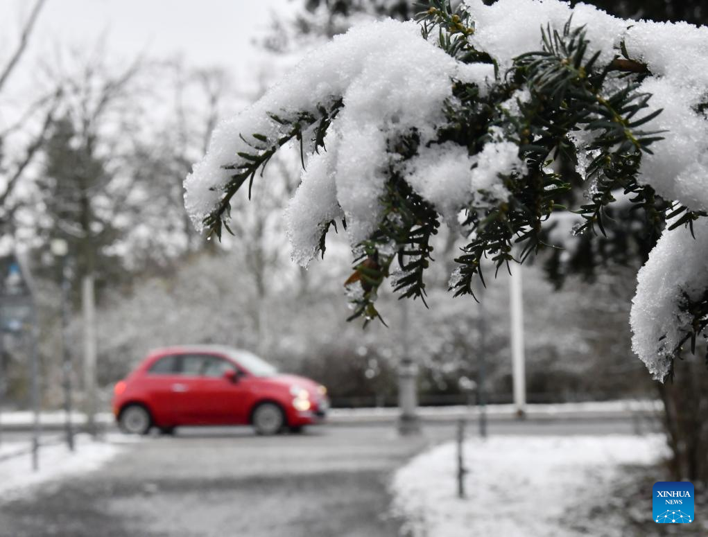 A car runs on a road in Berlin, Germany, Jan. 5, 2024. (Xinhua/Ren Pengfei)