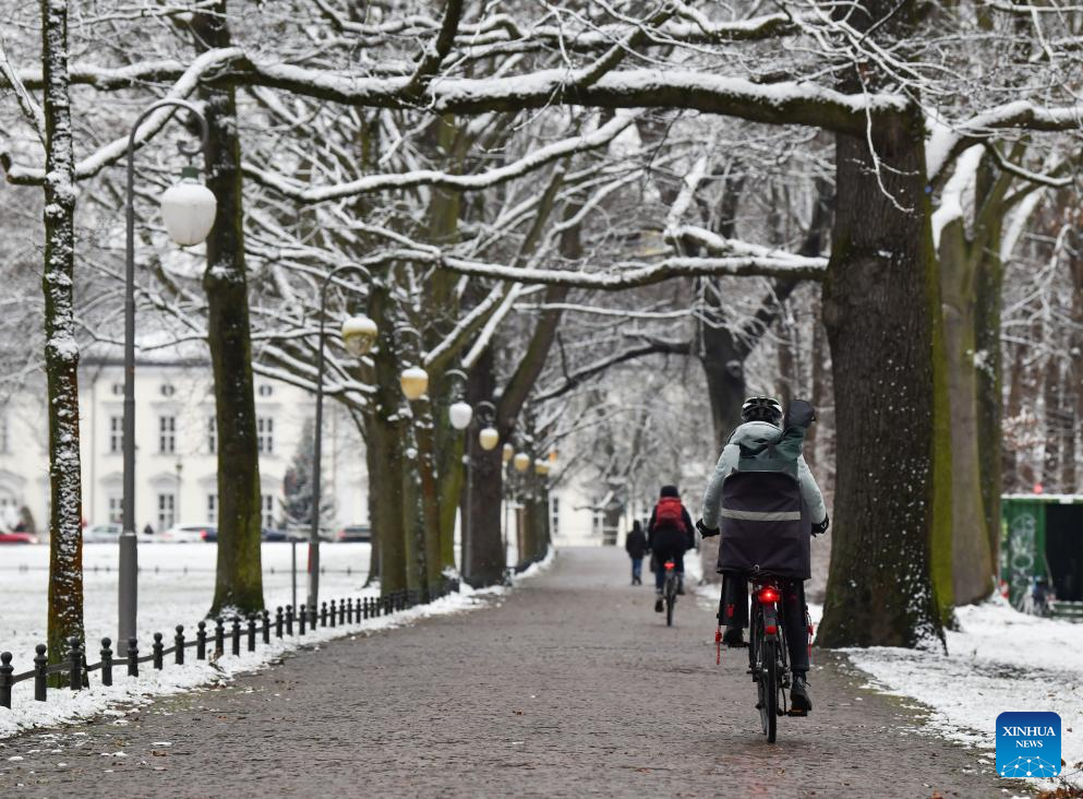 People ride bikes at the Tiergarten Park in Berlin, Germany, Jan. 5, 2024. (Xinhua/Ren Pengfei)