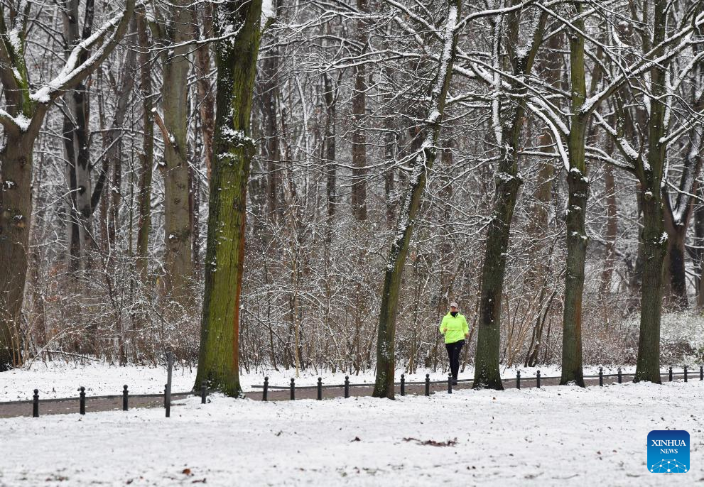 A woman runs at the Tiergarten Park in Berlin, Germany, Jan. 5, 2024. (Xinhua/Ren Pengfei)