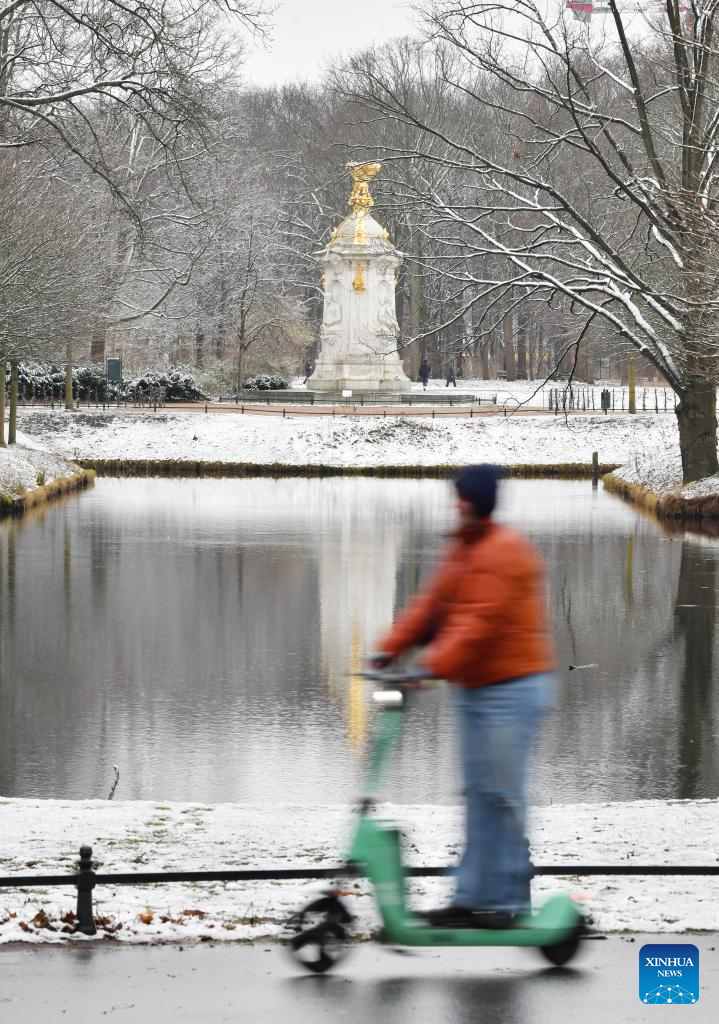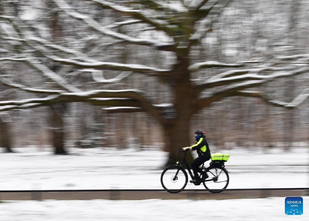 A rider is seen at the Tiergarten Park in Berlin, Germany, Jan. 5, 2024. (Xinhua/Ren Pengfei)