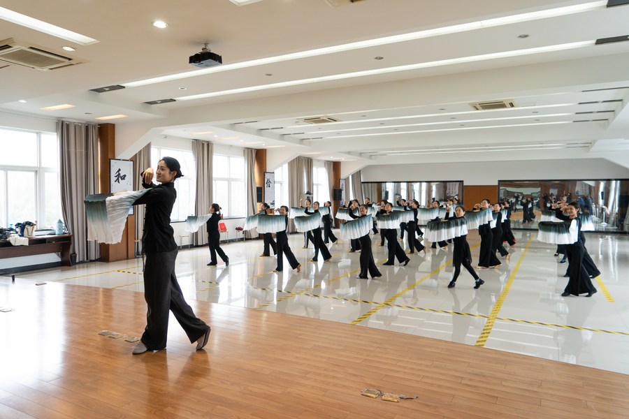 HEFEI, Jan. 9 (Xinhua) -- As melodic tunes permeate the classroom, a group of students gracefully manipulate their folding fans, moving to the rhythm and cadence of teacher Li Sijun's instructions.